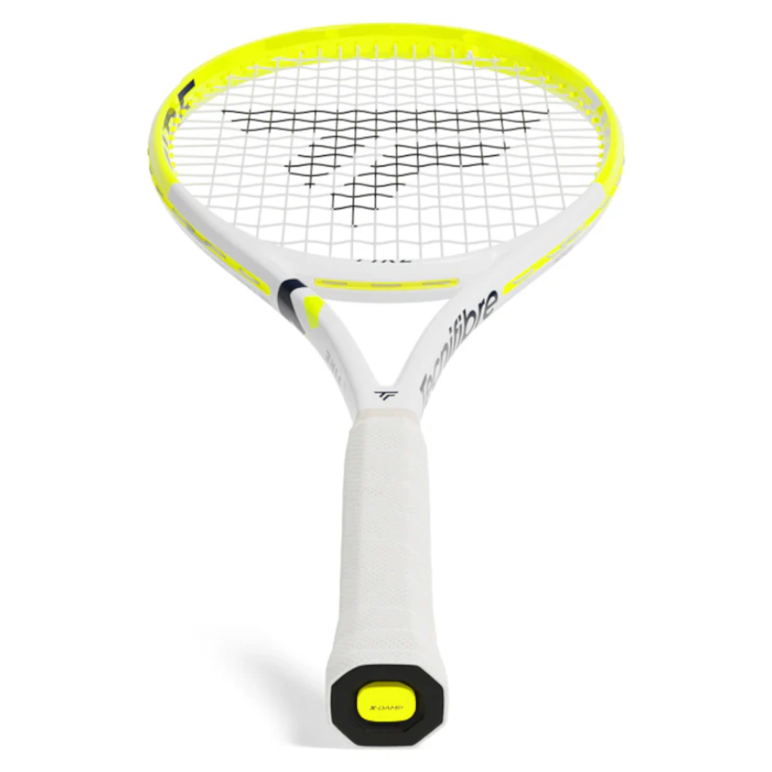 3. #Technologies#- X-Damp : Inspirée de la technologie créée par René Lacoste, le X-Damp est une masselotte présente au bout du manche de la raquette. Elle va légèrement se déplacer pour absorber les vibrations provenant du choc avec la raquette et filtrer jusqu'à 36% du choc pour réduire la fatigue musculaire et les risques de blessure.