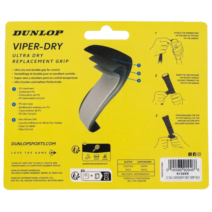 1. #description#Gardez une prise ferme sur votre raquette. La sensation ultra-sèche du grip Viper-Dry offre une absorption parfaite de la transpiration et une durabilité extrême.