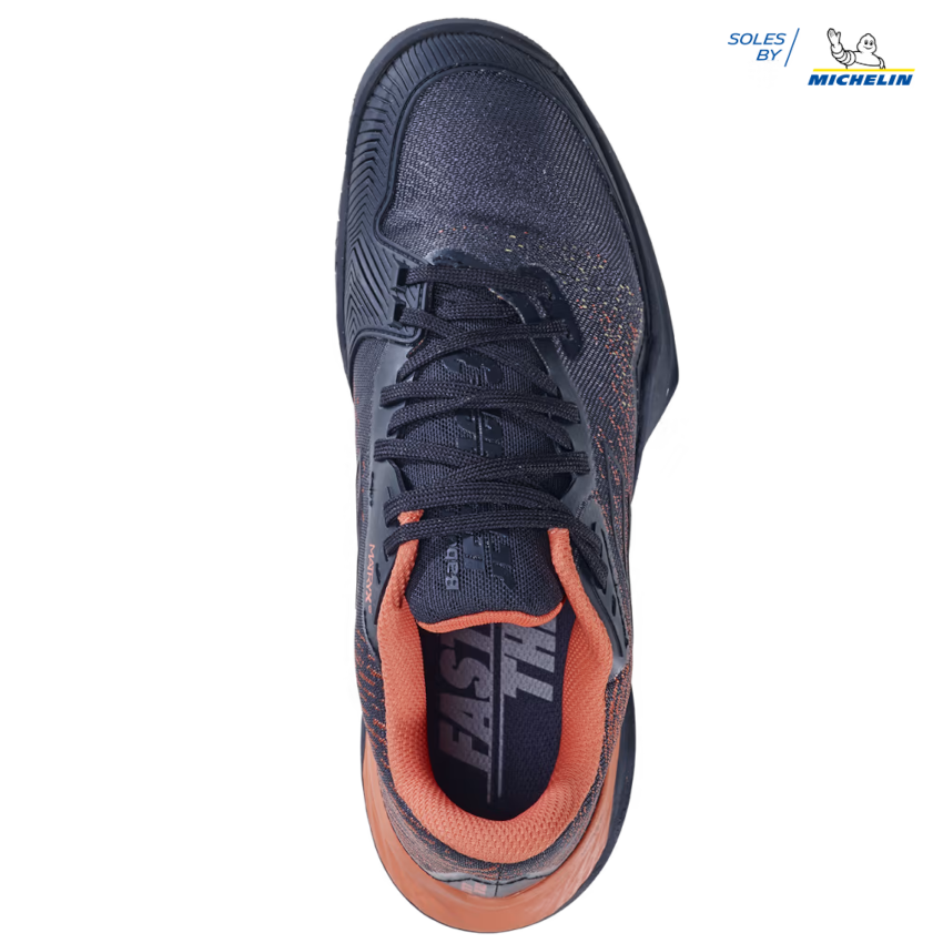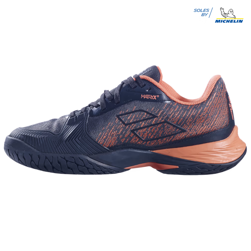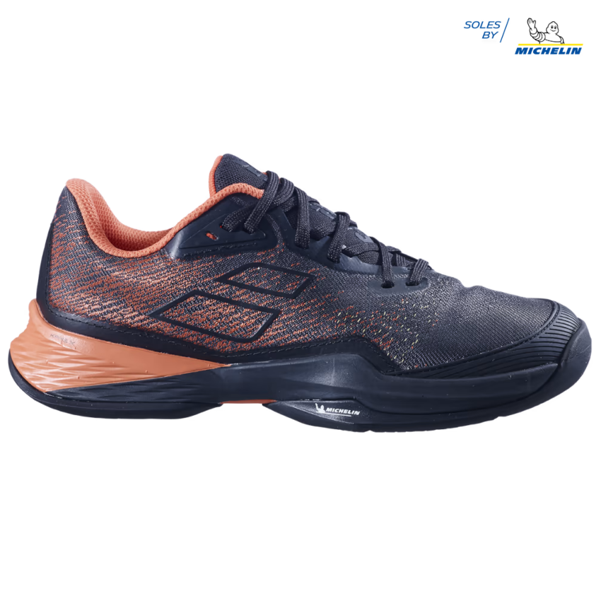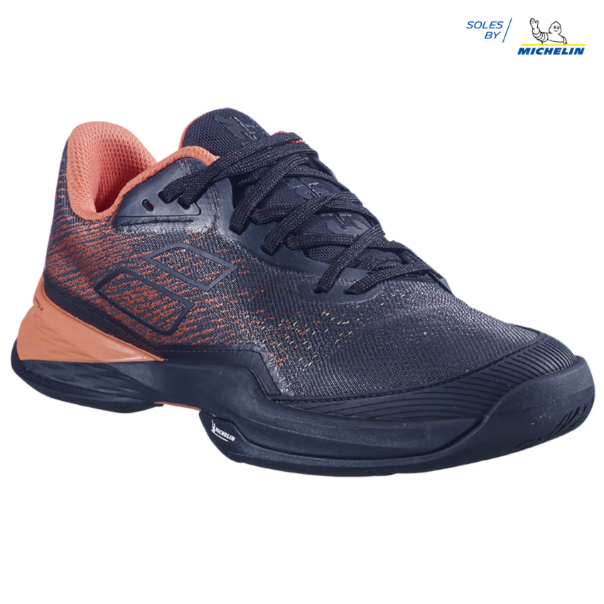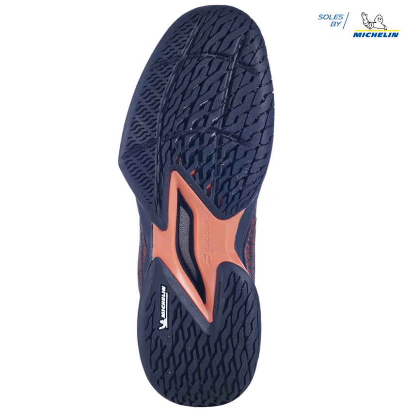 - DURABILITÉ SEMELLE. La semelle a été repensée pour répondre plus précisément aux sollicitations du jeu : la surface et l’épaisseur de la sculpture ont été augmentées dans les zones les plus sollicitées en abrasion et allégées dans les zones les moins sollicitées. La semelle JET MACH 3 conserve la technologie Michelin Premium et offre ainsi une durabilité accrue pour réduire l’usure et l’abrasion liées aux déplacements spécifiques du tennis.