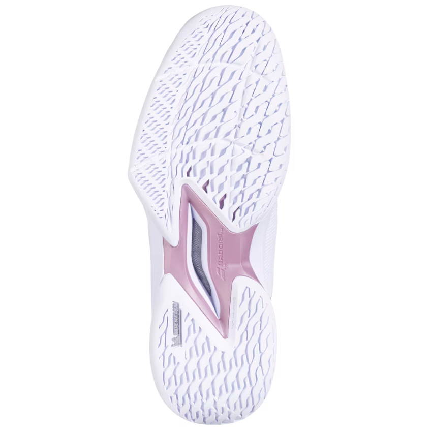 DURABILITE. Pour gagner en durabilité et prolonger la durée de vie de ces chaussures, Babolat a augmenté l’épaisseur de la semelle externe au niveau des zones les plus sollicitées lors des déplacements. La semelle JET Tere 2 associée à la technologie Michelin offre ainsi une durabilité accrue pour réduire l’usure et l’abrasion liés aux déplacements spécifiques du tennis.