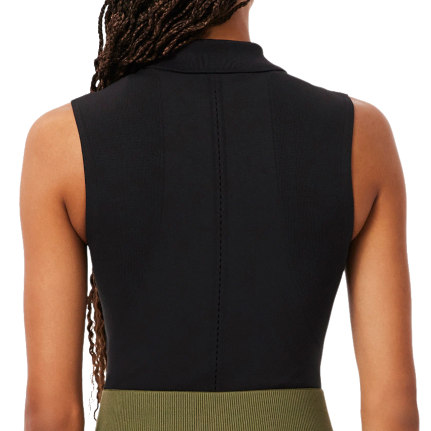 1. #description#Testé et approuvé par les joueuses Lacoste, ce polo sport sans manche stretch conçu pour le tennis illustre le savoir-faire maille de la maison. Fruit d'une technique de tricot innovante, il arbore un tissu sans coutures qui suit les lignes du corps, libère le mouvement et offre une grande respirabilité. Ses découpes singulières et des finitions soignées ajoutent l'élégance à la performance.