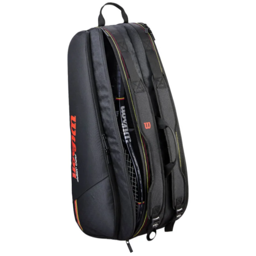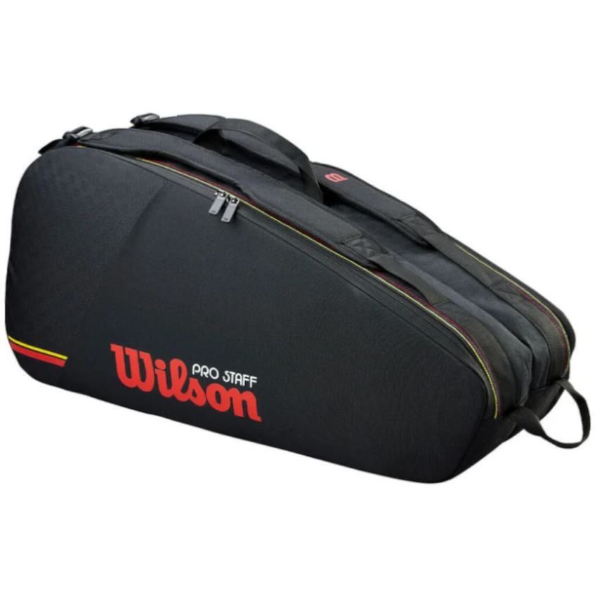 1. #description#La housse de tennis Pro Staff Classic 6 Pack équipe les meilleurs joueurs de tennis pour chaque match. Ce sac de raquette Wilson en pack de 6 a un design inspiré par notre franchise de raquettes la plus emblématique, le Pro Staff. Il a deux compartiments principaux qui peuvent transporter jusqu’à six raquettes, ainsi que des vêtements, chaussures et autres accessoires de tennis. Deux poches supplémentaires à l’extérieur contiennent des objets personnels et de valeur plus petite.