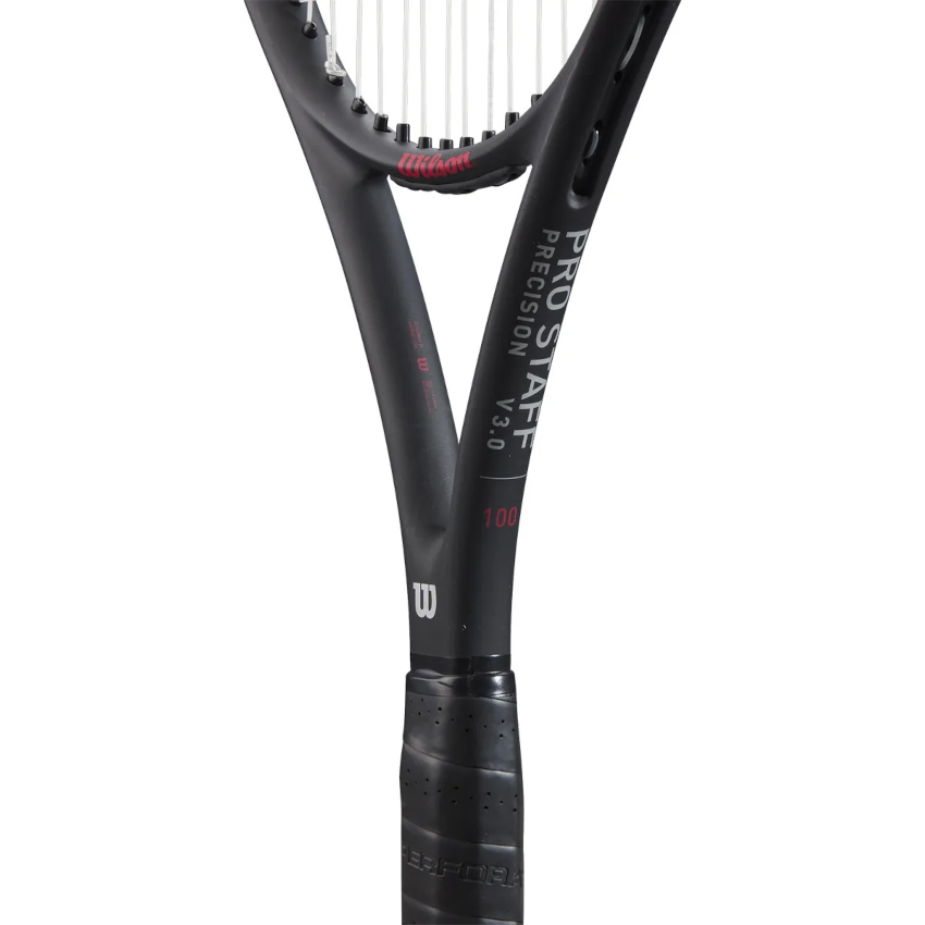1. #description#La Pro Staff Precision 100 est idéale pour les joueurs de tennis amateurs qui cherchent à passer à l’étape suivante de leur jeu. Elle est construite avec un cadre en graphite mat doté de la technologie BLX qui filtre les vibrations et d’un système de pondération périmétrique pour une meilleure stabilité en torsion. Le résultat est une raquette bien équilibrée et exceptionnellement confortable. Cette raquette de tennis pré-cordée a une tête intermédiaire pour une sensation et un contrôle améliorés et une poignée perforée Cushion Air pour maintenir une poignée confortable.