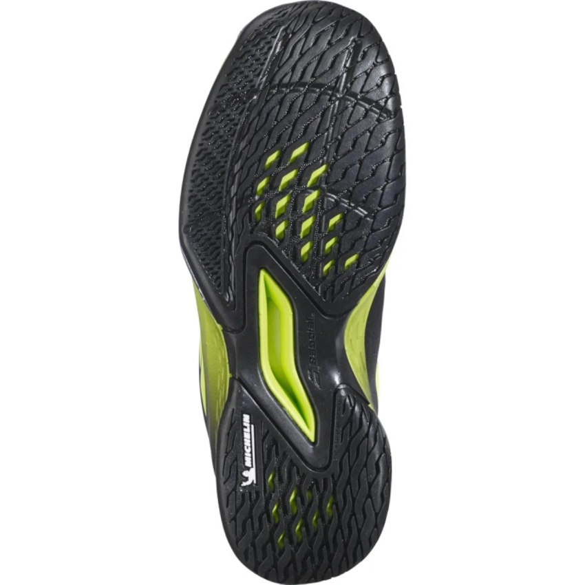 Le maintien est renforcé par un strap au niveau du médio-pied, offrant un contrôle optimal sur le court. La pièce de protection à l'avant-pied assure une protection maximale. La semelle Michelin, garantit une adhérence supérieure et une durabilité sur tous les types de terrains.