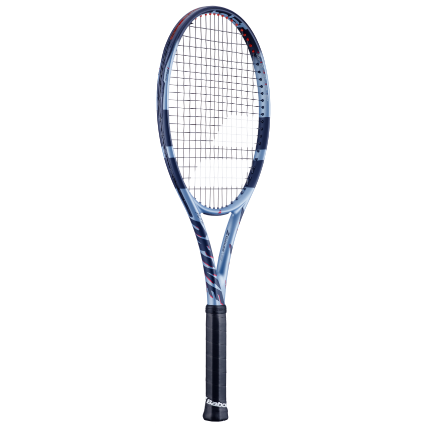 La raquette de tennis Pure Drive arbore un tout nouveau design pour refléter cette puissance débordante : un bleu métallisé, moderne, sublimé d'un liseré rouge flamboyant au cœur pour exprimer la puissance qui bouillonne entre vos mains.