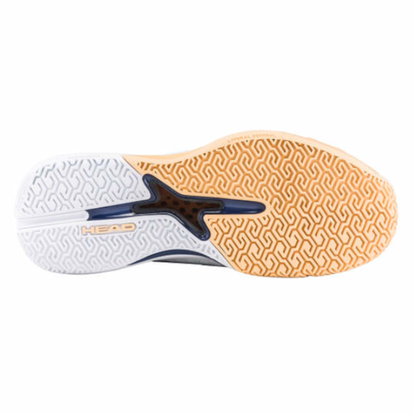 Performance et confort sont au rendez-vous avec une construction EVA triple au milieu du pied, avec DynaFoam au talon pour une absorption avancée des chocs, ainsi qu’un EVA hautement réactif à l’avant-pied et une partie plus souple au milieu du pied et au niveau du gros orteil pour un confort plus élevé. Les attaquants de fond de court apprécieront la façon dont la tige en PU moulée offre une flexibilité et une durabilité optimales ; certaines zones ont du matériau supplémentaire là où il est nécessaire pour la protection lors des glissements, tandis que d'autres zones ont du matériau réduit pour réduire le poids. Une pièce supplémentaire moulée en PU aide à protéger les lacets et les œillets. Les sangles Lock down straps intégrées au système de laçage améliorent la stabilité et permettent un ajustement plus facile de l’ajustement et du confort. La semelle extérieure est fabriquée avec le mélange en caoutchouc non marquant Hybrid+ de HEAD pour une adhérence et une durabilité exceptionnelles.