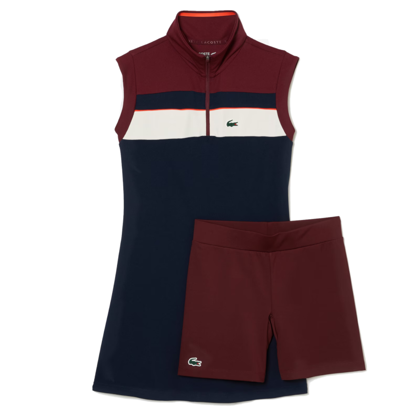 1. #description#Pratiquez pendant des heures votre sport préféré dans cette robe tennis iconique. Shorty détachable, matière extensible et absorbante, elle est l’alliée de tous vos matchs. Côté style, modulez l’ouverture de son col grâce à un zip pratique.