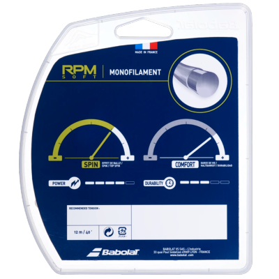 Parce que le cordage est le moteur devotre raquette, il est aussi important de bien le choisir. Vouscassez votre cordage multifilament trop rapidement ? Vous cherchez unmonofilement plus confortable pour votre bras ? Découvrez ladernière innovation Babolat qui combine le meilleur des deux mondes.Le nouveau RPM SOFT, monofilament en polyamide, est plus durablequ'un multifilamement et plus confortable qu'un monofilamentpolyester.